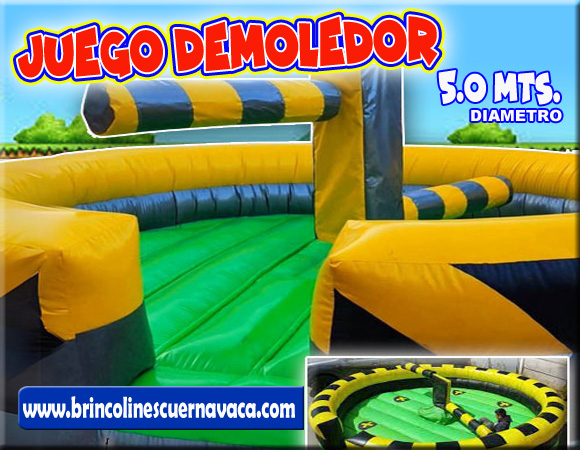 BRINCOLIN INFLABLE DEMOLEDOR GIRATORIO, Es uno de los juegos mas interactivos que tenemos, ideal para todas las edades, seguro y confiable con un colchón de 5.0m de diametro y llamativos colores harán de tu evento una fiesta inolvidable llena de carcajadas y diversión para chicos y grandes, reserva tu fecha con mucha anticipación, pues es uno de los juegos más solicitados en las fiestas y reuniones familiares.